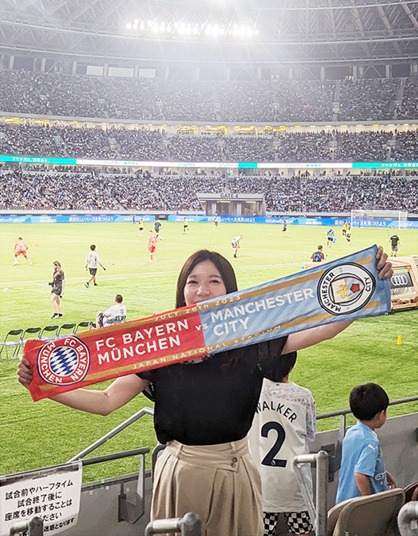 カタールW杯をきっかけに、サッカー観戦が新たな趣味になりました。特にプレミアリーグをよく観ていて、三苫選手の所属するブライトンを応援しています。最初は日本人選手が所属しているからという理由で観ていたのですが、若手の育成に力を入れていてチームに活気があり、ボールの支配率を上げて繋いで得点する戦術も楽しくてさらにハマってしまいました。中継だと深夜なので眠い目をこすりながら夫と楽しんでいます!